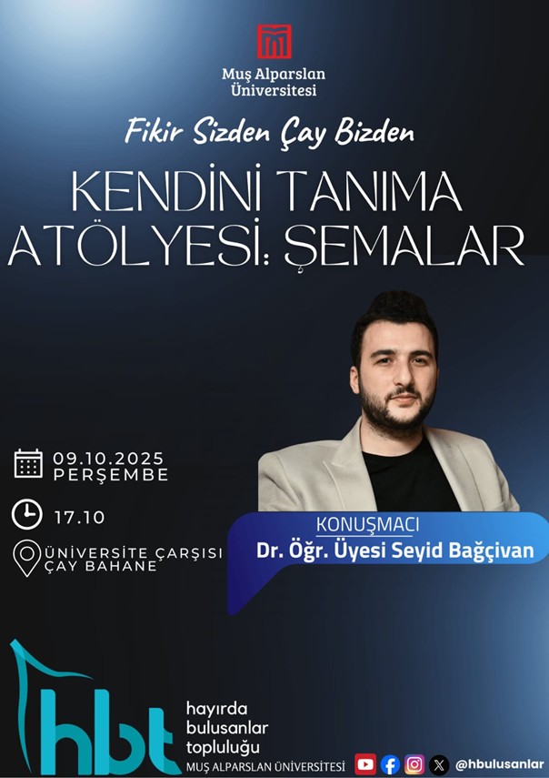 The event took place at Çay Bahane, located in the Muş Alparslan University Campus Bazaar, with Dr. Öğr. Üyesi Seyid Bağçivan as the speaker. The program, which began at 17:10 on 9 October 2025, was attended by undergraduate students.