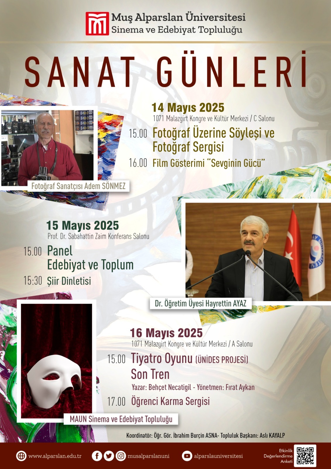 Sinema ve Edebiyat Topluluğu Başkanı Öğr. Üyesi İbrahim Burçin ASNA'nın koordinatörlüğünde gerçekleşecek olan "Sanat Günleri Etkinlikleri Programı" :