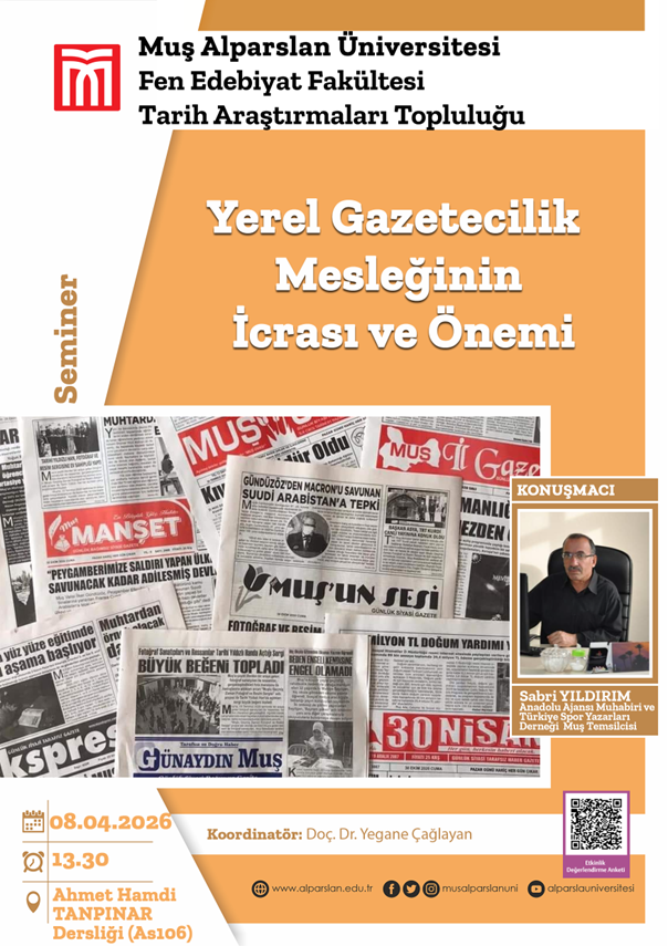 Seminerin konuğu olan Anadolu Ajansı (AA) Muş muhabiri Sabri Yıldırım, yaklaşık 40 yıllık meslek hayatından edindiği tecrübeleri öğrencilerle paylaşarak gazeteciliğin hem teorik hem de pratik boyutlarına ışık tuttu. Konuşmasında yerel gazeteciliğin toplumla kurduğu güçlü bağa dikkat çeken Yıldırım, özellikle yerel basının kamuoyunu bilgilendirme, toplumsal sorunları gündeme taşıma ve yerel yönetimlerle vatandaş arasında köprü kurma gibi kritik görevler üstlendiğini ifade etti.